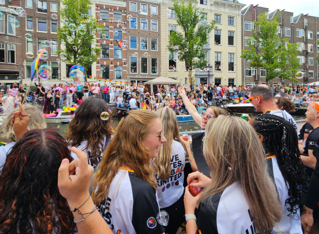 Tijdens de Canal Parade op zaterdag 2 augustus voer een speciale voetbalboot mee onder het motto ‘Love Unites, Football United’. Met onder meer speelsters uit de Eredivisie Futsal Vrouwen was het vrouwenfutsal nadrukkelijk vertegenwoordigd in deze viering van inclusiviteit en diversiteit.